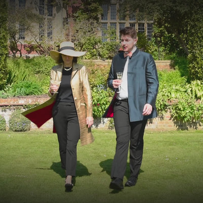This beautiful Alfriston Coat in Oyster Gold is knee length, single breasted and made from raw silk. It is best worn open, with a half belt at the back for a flattering fit, a revere collar and vents at the sides.